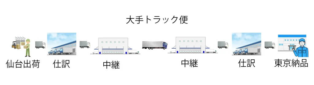大手トラック便は工程が多く、今日連絡して「仙台→東京」即日納品は不可能。