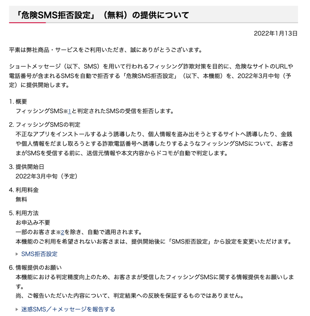 私は長年のドコモユーザーです。変なSMSは近年急増してますから、これは嬉しい発表ですね。