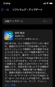 その際、iOS15.7とiOS16の二つのアップデート候補が表示されてました。