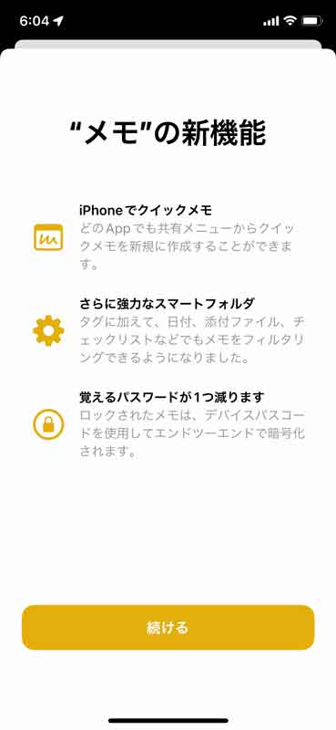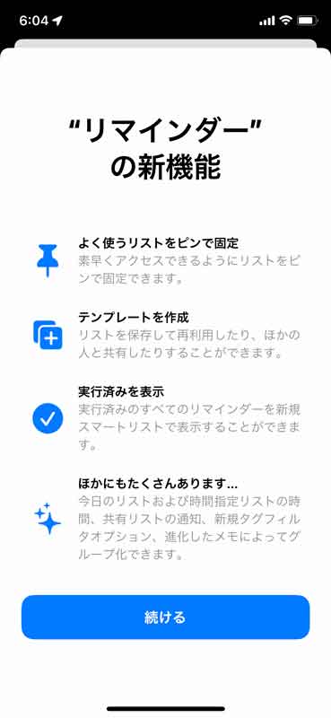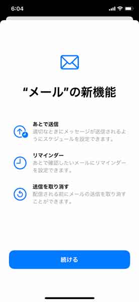 メール、メモ、リマインダーですが、ios16更新後の初回の各アプリ起動時に以下のような新機能の紹介画面が出てきました。