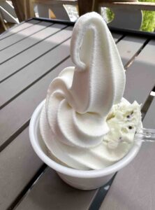 写真だとソフトクリームだけに見えますが、このカップの高さまでのエリアにはチョコミントが入っているんです。