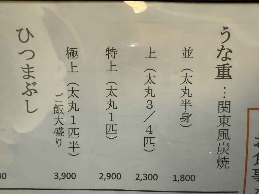 ちなみに写真の鰻重は下のメニューの特上になります。