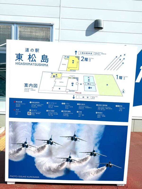 この道の駅は、ブルーインパルスが所属する航空自衛隊の宮城県松島基地の近くなので、ブルーインパルスに関連するお楽しみがある道の駅になってますが、営業時間外だから店内はみることが出来ませんでした。