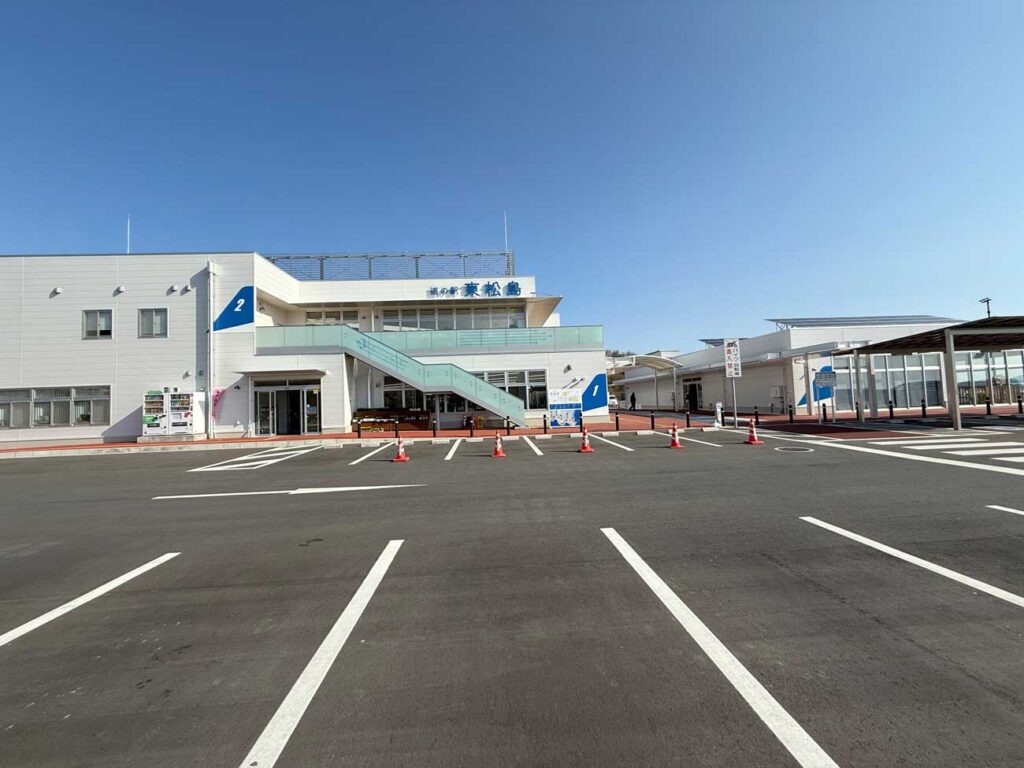この駐車場は一般道から入る方です。建物の向こう側には三陸道上り線の矢本パーキングエリアがあります。
