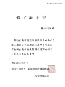2025年4月1日から貨物軽自動車安全管理者の選任が義務となりました。