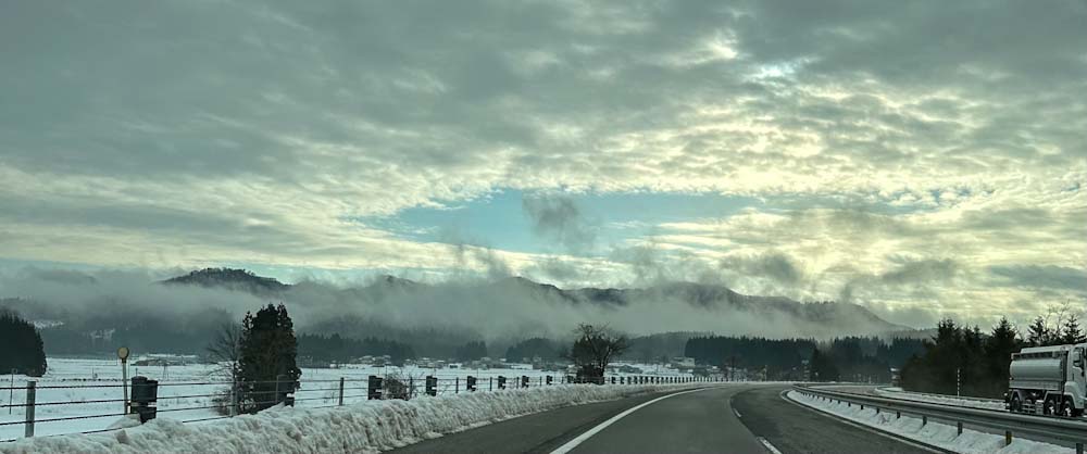 今朝の山形自動車道からの景色はこんな感じでした。スキー場も雪が積もってました。 -