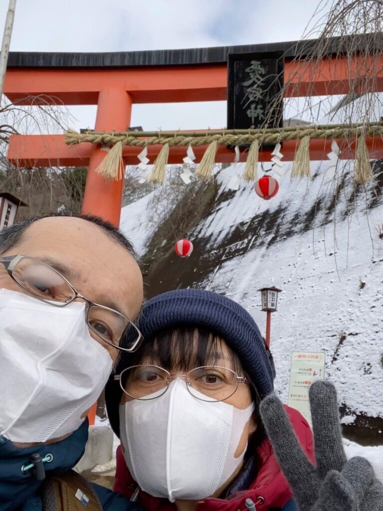仙台市輪王寺庭園にて夫婦の記念写真