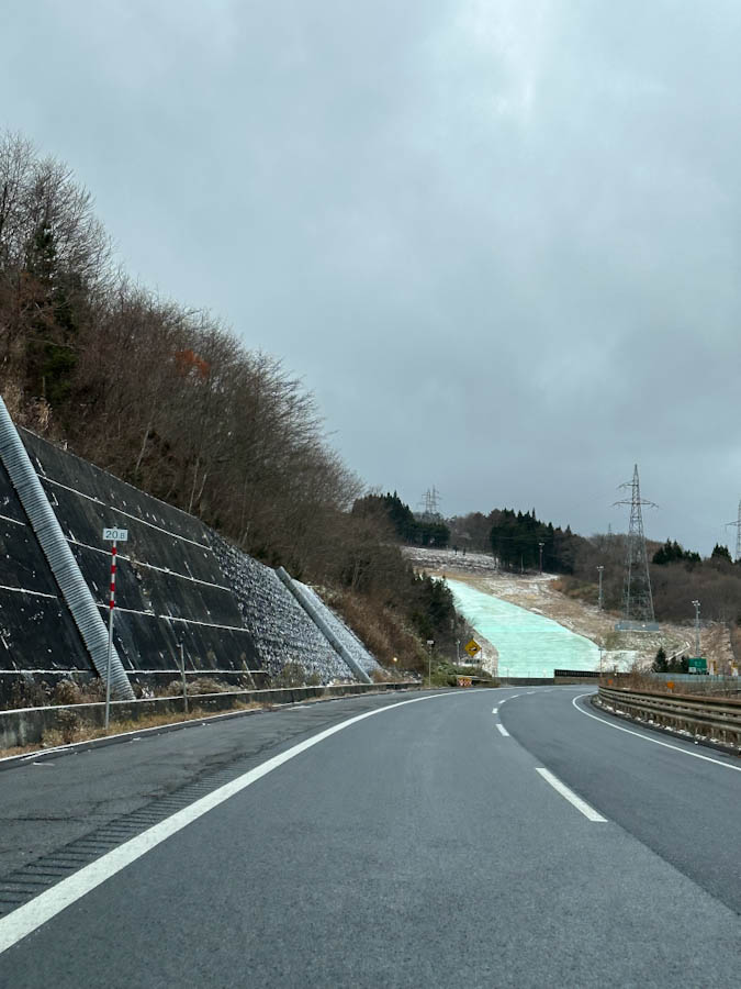 今朝の山形自動車道からの景色はこんな感じでした。スキー場も雪が積もってました。 -