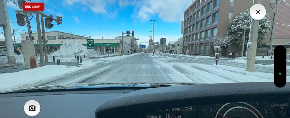 今朝の山形市内は路面ツルツルでスタッドレスでも摩擦力ゼロ。 -