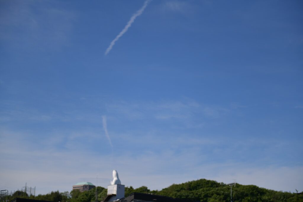 我が家から見える仙台大観音ですが飛行機雲が頭から出ているみたいで面白かった -