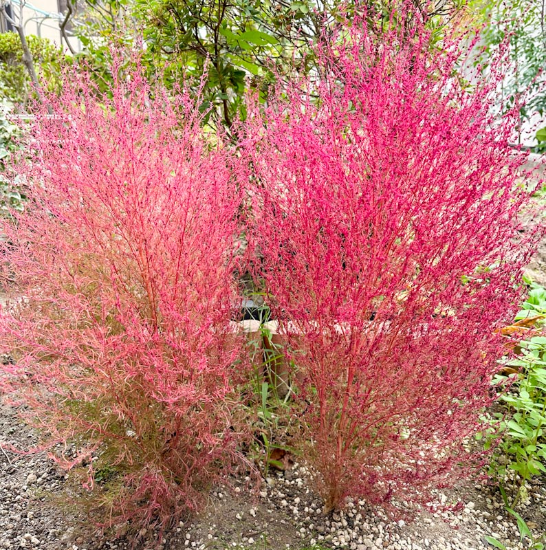 我が家のコキアが紅葉しました。毎年この場所に植えてますのでタネいっぱい落ちるのに毎年買わないと咲きません(笑) -